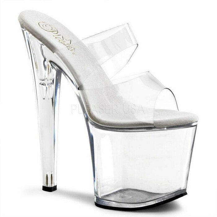 Pleaser プリーザー ミュール サンダル 19 cm ヒール クリア スケルトン オープントゥ ダブルストラップ ピンヒール ハイヒール クリアヒール 厚底 超厚底 シューズ レディース メンズ ポールダンス 大きいサイズ コスプレ コスチューム キャバ TABOO-702 TAB702/C/M 取寄