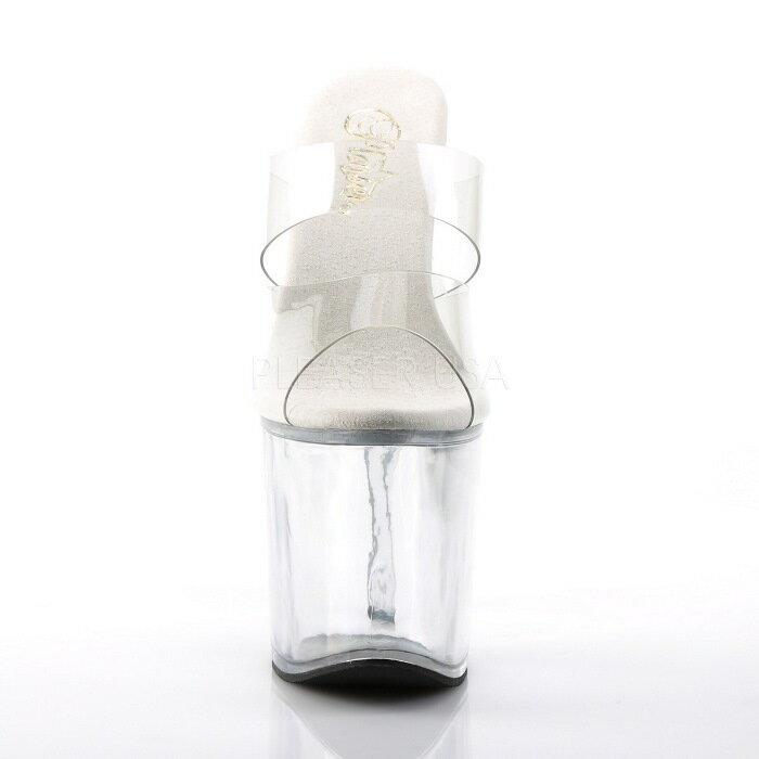 Pleaser プリーザー 20cm ヒール 厚底 ミュール サンダル 超厚底 レディース メンズ オープントゥ ピンヒール スケルトン 透明 クリア 黒 ブラック ボーダー柄 大きいサイズ 靴 女装 男装 パーティー 春 夏 秋 冬 コスプレ 20センチ ヒール XTREME-801LN XTM801LN/C/B 取寄