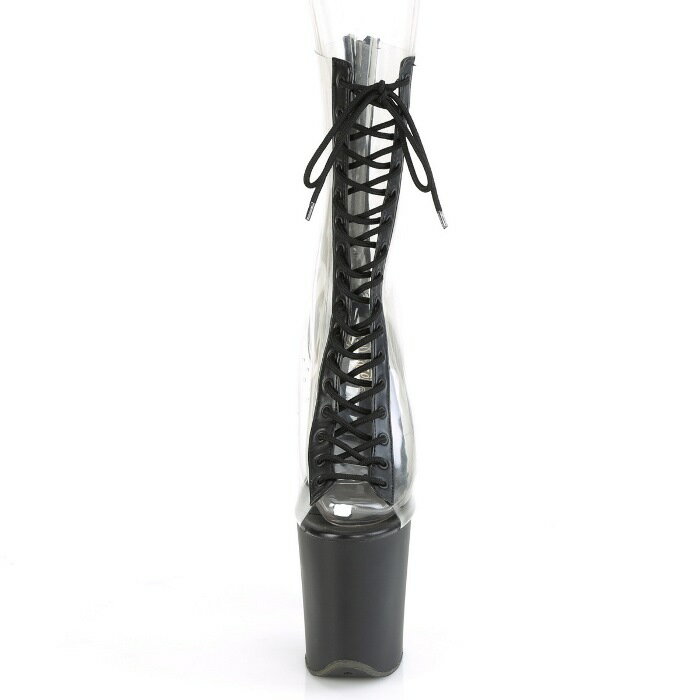 Pleaser プリーザー ショートブーツ 20cm ヒール ブーティ 黒 ブラック クリア スケルトン マット ブーツ 厚底 超厚底 ハイヒール ピンヒール 編み上げ レースアップ 大きいサイズ ポールダンス セクシー コスプレ 20センチ ヒール FLAMINGO-800-34 FLAM800-34/C-BPU/B 取寄